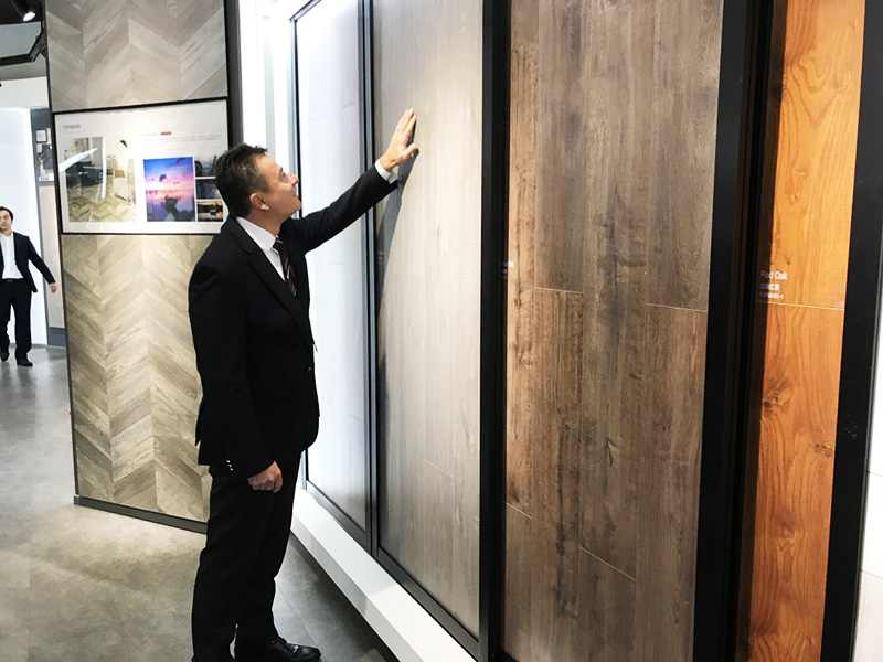 在參觀的現場,馬祖驊先生與Robert F.Fitzka先生與帝龍陳智劍先生不斷深入交流,雙方秉著共筑美好家居產品的想法,開拓裝飾紙行業新道路的愿望,共同達成新的合作理念。