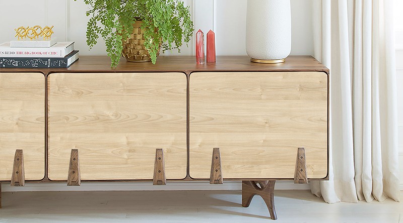 設計理念:年輕的我們總是覺得得到的太少,千帆過境后才發現極簡主義是永恒的選擇。這款榆木家具飾面遵循極簡主義,創造了溫馨寧靜的氛圍。木質色澤美麗淡雅,柔和均勻,自然細膩的紋理打造了經久耐看的飾面。